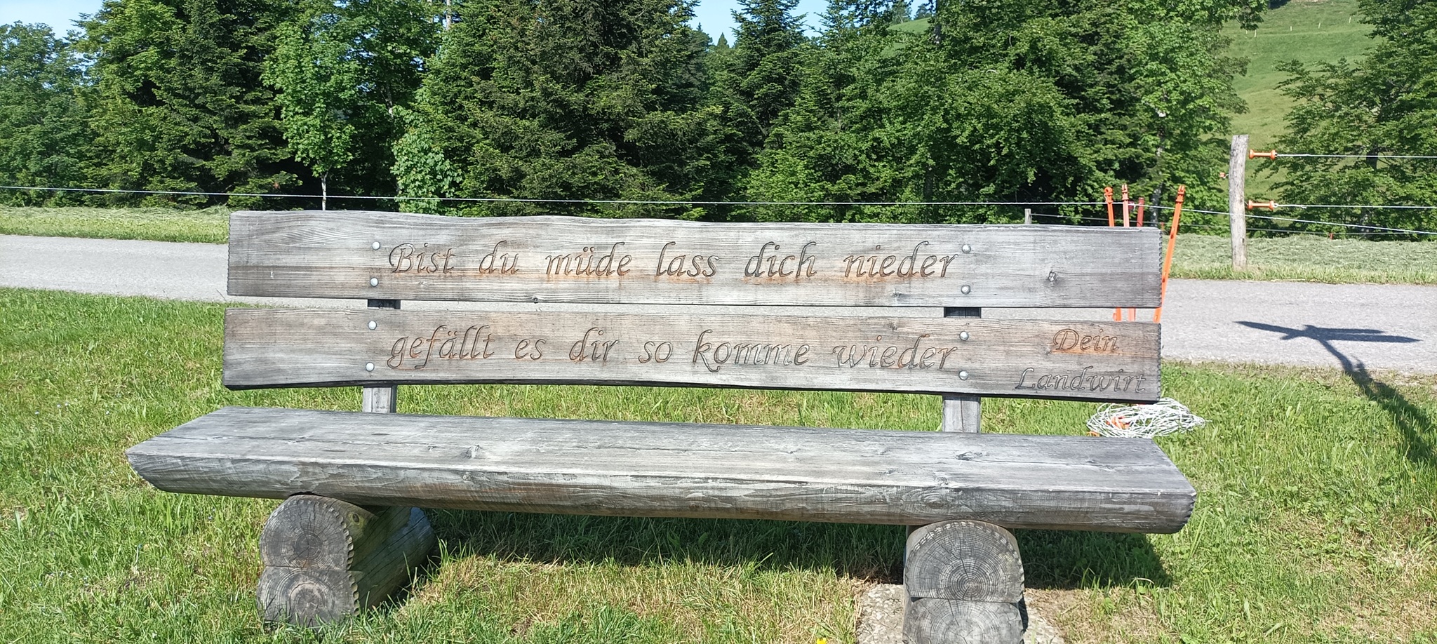 Danke dem, der diese nette Bank mit der Einladung auf der Hulftegg platziert hat.